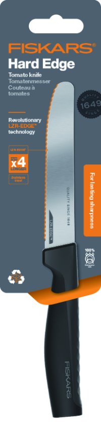 Nôž s vrúbkovanou čepeľou je ideálny na krájanie ovocia a zeleniny s tenkou šupkou. Čepeľ noža je zo silnej nerezovej oceľovej planžety. Ostrie je zhotovené revolučnou technológiou LZR-EDGE. Tá umožňuje, aby nôž zostal ostrý 4-krát dlhšie ako štandardné nože. Držadlo noža je ergonomicky tvarované s jedinečným 3D vzorom, ktorý zaisťuje perfektné držanie. Výška: 290 mm, dĺžka: 23 mm, šírka: 70 mm, hmotnosť: 70 g.