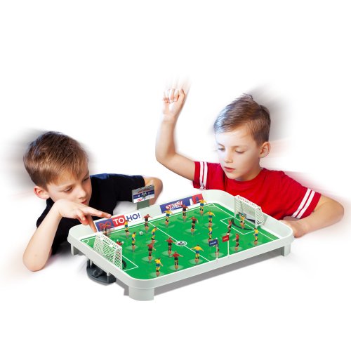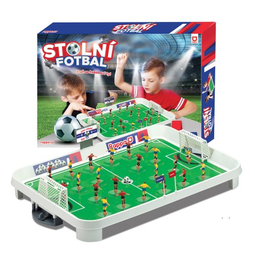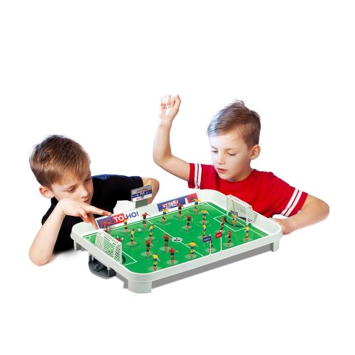 Stolný cvrnkový futbal je obľúbenou hrou pre malých futbalistov, ale aj pre celú rodinu. Plastové ihrisko obsahuje 22 hráčov, 2 góly, 1 loptu, 2 stožiare s vlajkami a počítadlo gólov. S týmto futbalom svojich kamarátov stopercentne ohromíš. Tak zaži veľa zábavy a zahraj si senzačný zápas! Rozmer hracej plochy je cca 44 x 30 cm.