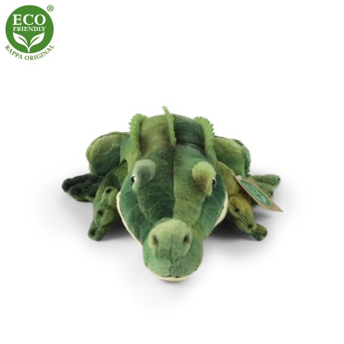 Plyšový krokodíl meria 34 cm a vďaka tým najkvalitnejším materiálom sa radí do Exkluzívnej kolekcie plyšových hračiek značky Rappa. Vďaka ručnému spracovaniu každého kusu navyše vyzerá ako živý. Prečo označenie ECO-FRIENDLY? Rappa si je vedomá všetkých dopadov na životného prostredia, zameriava sa na udržateľnosť a obmedzenie používania plastov na minimum. Preto je výplň hračiek vyrobená z recyklovaných materiálov, najmä PET fliaš. Tá je však úplne nezávadná a vhodná aj pre deti od narodenia. FUN FACT: Vedeli ste, že krokodíly majú neuveriteľne silný stisk čeľustí, čo im umožňuje ľahko zachytiť a držať korisť?