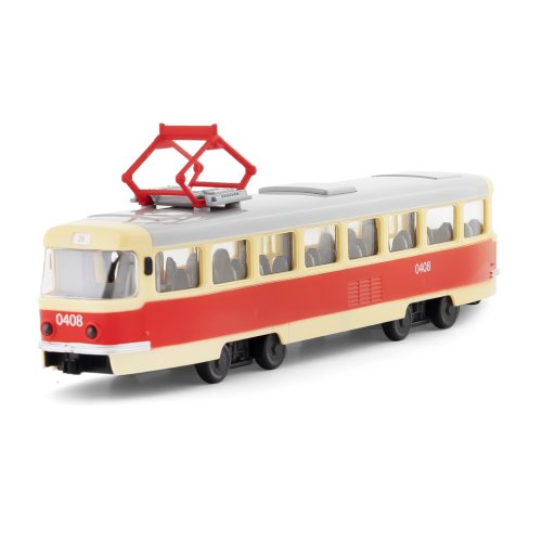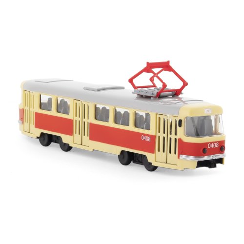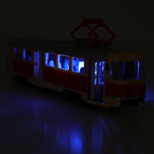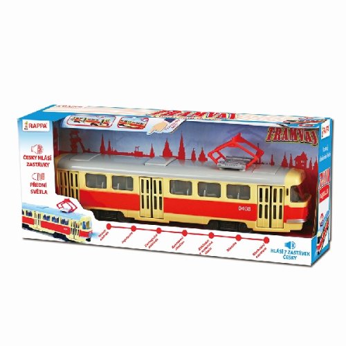 Originálna červeno-biela električka T3 v mierke 1:54, ktorá oznamuje stanice v slovenskom jazyku, je určite tým pravým darčekom pre vaše deti! Električka jazdí na voľný chod, dvere je možné manuálne otvoriť a zatvárajú sa pomocou tlačidla umiestneného na streche vozidla. Pri každom otvorení sa ozve hlásenie, pri zatvorení hlási ďalšiu zastávku. Otvorením predných dverí sa v električke rozsvieti modré svetlo. Táto unikátna hračka v dĺžke 28 cm, je vyrobená z plastu a vyžaduje použitie 3 ks batérií LR44/AG13, ktoré sú jej súčasťou. V roku 2020 vyhrala 3. miesto v súťaži Hračka roku v kategórii Chlapčenské hračky v Českej republike.