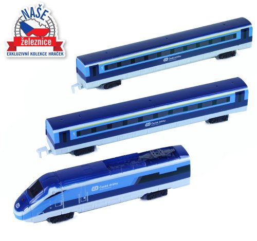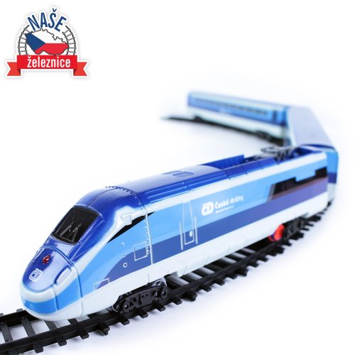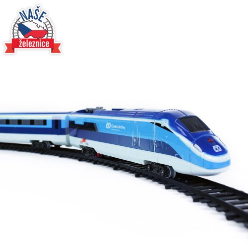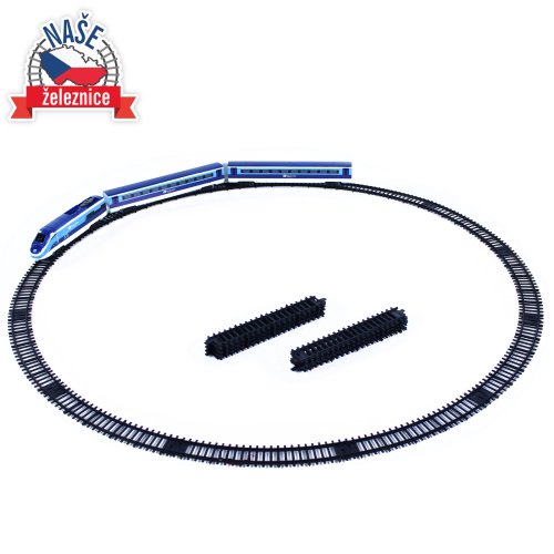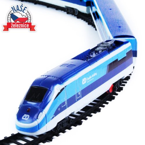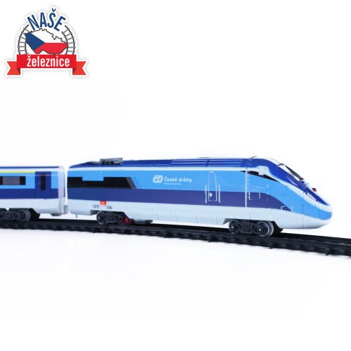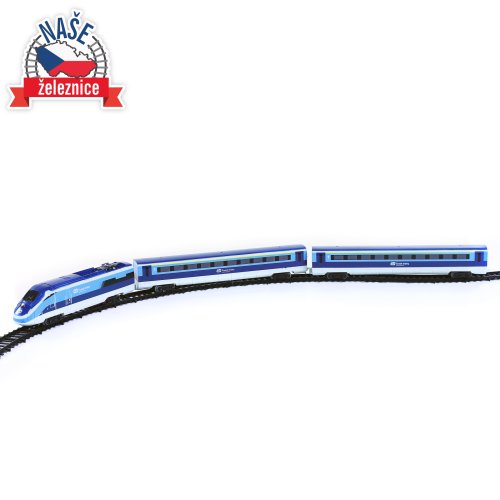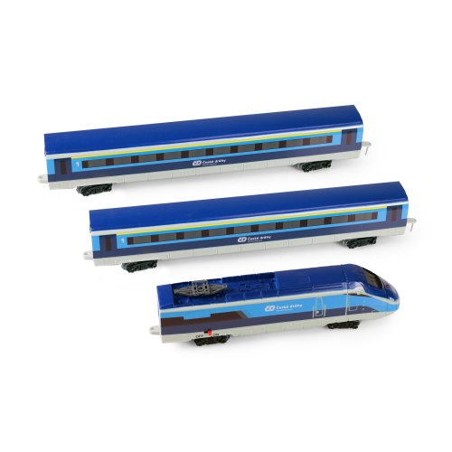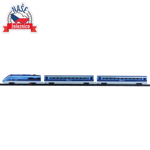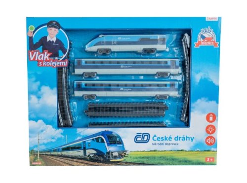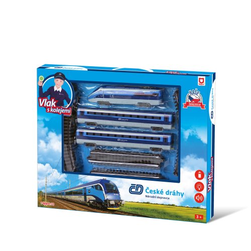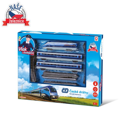 Súprava s originálnym vlakom od Českých dráh obsahuje lokomotívu s dvoma vagónmi i vláčikodráhu skladajúcu sa z 12 zahnutých a 8 rovných koľají. Vlak vydáva zvuk a svieti. Vhodné od 3 rokov.