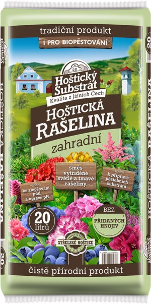 Hoštická rašelina záhradná je zmes vytriedenej svetlej a tmavej rašeliny. Má všestranné využitie v záhradníctve, lesníctve aj v poľnohospodárstve. Je vhodná na zlepšovanie záhradných pôd, na ich prevzdušňovanie, odľahčovanie a úpravu pH. Umožňuje dobrý rast a bohatú tvorbu koreňov. V pôde zadržiava vlahu a chráni rastliny pred vysychaním. Tým, že obohacuje pôdu o organické látky, zlepšuje zadržiavanie živín pre rastliny a zamedzuje ich vyplavovaniu do spodných vôd. Ide o čisto prírodný produkt, nemá upravené pH a nemá pridané živiny. Balenie: 20 l.