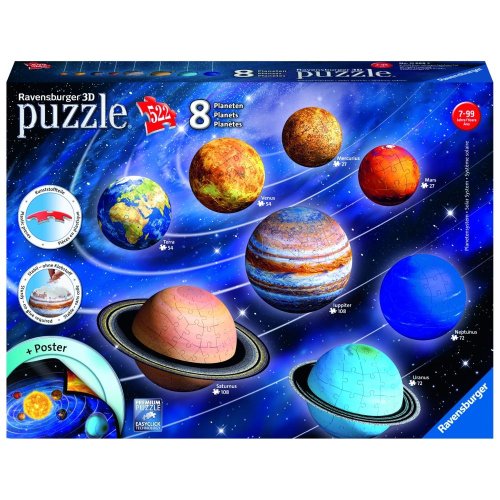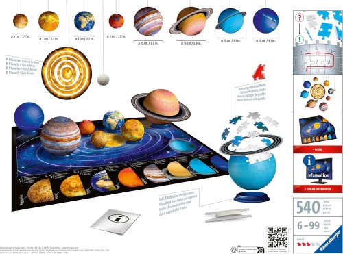 Puzzle Ravensburger 2411668 planetárna sústava Balenie obsahuje puzzle na zostavenie 3D modelu slnečnej sústavy Puzzle sa skladajú zo 522 plastových dielikov Na zostavenie nie je potrebné lepidlo, aj tak je výtvor …