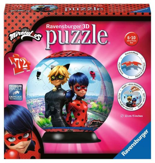 Dekoratívny puzzleball s motívom animovaného seriálu Čarovná Lienka a Čierny kocúr. Dokonalá guľa bez použitia lepidla - to je 3D Puzzle Ball® od RAVENSBURGER. Každý z perfektne prepracovaných 72 plastových dielikov sa podieľa na vytvorení pevnej, hladkej gule. Špeciálne zahnuté dieliky určite zapadajú do seba a guľa je po zostavení prekvapivo stabilná. Balenie obsahuje 72 dielikov, návod a podstavec. Puzzleball® má po zostavení priemer 13 cm. Odporúčané pre deti od 6 rokov. Rozmer zloženého puzzle cca priemer 13 cm