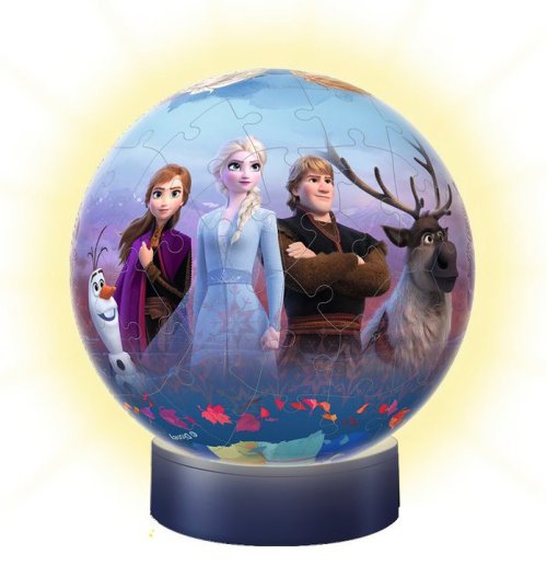 Druhé pokračovanie filmovej série Ľadové kráľovstvo teraz aj vo forme dekoratívneho puzzleballu, ktorý sa po tlesknutí sám rozsvieti. Dokonalá guľa bez použitia lepidla - to je 3D Puzzle Ball® od RAVENSBURGER. Každý z perfektne prepracovaných 72 plastových dielikov sa podieľa na vytvorení pevnej, hladkej gule. Špeciálne zahnuté dieliky určite zapadajú do seba a guľa je po zostavení prekvapivo stabilná. Balenie obsahuje predlohu, návod a podstavec. Puzzleball® má po zostavení priemer 13 cm. Odporúčané pre deti od 6 rokov. Rozmer zloženého puzzle cca priemer 13 cm