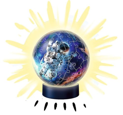 Vďaka nočnej edícii Nachtlicht od Ravensburgeru môže mať očarujúcu svietiacu guľu s vesmírnym motívom aj Vaše dieťa. Puzzle je veľmi obľúbené nielen vďaka ľahkej manipulácii, ale aj stabilite. Na skladanie nepotrebujete lepidlo, špeciálne vyrobené zakrivené dieliky do seba jednoducho zapadnú a držia tvar. Skladať je možné podľa obrázku alebo podľa čísel - plastové dieliky sú zo zadnej strany očíslované. Priemer puzzleballu je 13 cm. Balenie obsahuje: