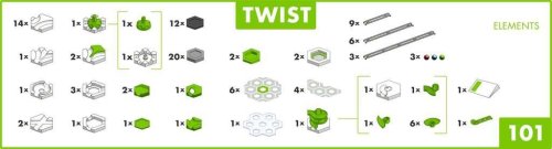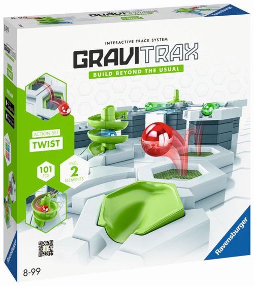 Neobmedzená zábava a akcia vďaka nekonečným možnostiam. Akčný set Twist obsahuje všetko pre stavbu guličkových dráh GraviTrax plných akcie. Celkom 101 dielikov vrátane akčných doplnkov Trampolíny a Špirály, križovatiek alebo výhybiek vám pomôže preniknúť do sveta GraviTraxu a spoznať fyzikálne zákony formou hry. Nechajte guľôčku rozbehnúť to naplno s pomocou Trampolíny a Špirály - jednými z najakčnejších doplnkov zo sveta GraviTrax, ktoré guličky dobijú novou energiou a pridajú im na dráhe na rýchlosti. GraviTrax od nemeckého výrobcu Ravensburger je modulárna guličková dráha s možnosťou ďalších rozšírení, ktorá nadchne malých aj veľkých staviteľov. Stavajte, pretekajte s guličkami a vyskúšajte silu gravitácie v praxi! Prepracovaná stavebnica s variabilnými dielikmi Vám umožní vytvoriť si vlastný systém spletitých guličkových dráh alebo postaviť niektoré z predpripravených riešení. Z jednotlivých stavebných prvkov vytvoríte cestičky plné rôznych akcií, ktorými budú guličky postupne prechádzať. Systém guličkových dráh RAVENSBURGER GraviTrax môžete ľubovoľne rozširovať o ďalšie a ďalšie doplnky a vytvárať tak nové podoby zložitých a unikátnych cestičiek s vytunenými prekážkami. Stavebnica zaručuje nikdy nekončiacu zábavu okorenenú rozširovaním vedomostí o vlastnostiach gravitácie. Plánujte dráhy odkiaľkoľvek! S pomocou aplikácie GraviTrax môžete dráhy navrhovať aj na svojom mobile alebo tablete a potom všetko vyskúšať v praxi.