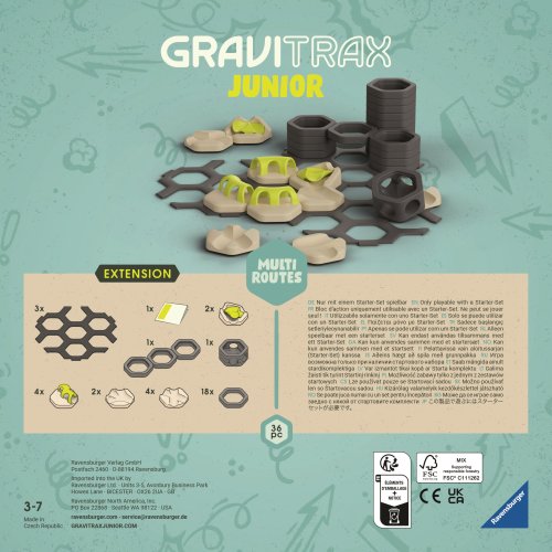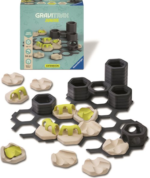 Tí najmenší si stavajú svoje vlastné svety z guličkových dráh, ktoré je možné podľa ľubovôle zdobiť a vytvárať tak jednotlivé tematické svety. Deti si tak pri kreatívnom stavaní užijú mnoho zábavy. Rozšírenie Križovatky obsahuje rozmanité prvky pre tvorbu ciest, ktoré sa rozvetvujú do rôznych smerov a otvárajú nové možnosti dráhy. Deti si tak sami môžu v rámci GraviTrax dráhy preskúmať toto prostredie a začať dobrodružstvo plné spletitých ciest. Všetky stavebné a dekoračné súčasti sú vyrobené z dreveného bioplastu. Rozšírenie obsahuje 35 stavebných a dekoračných prvkov.