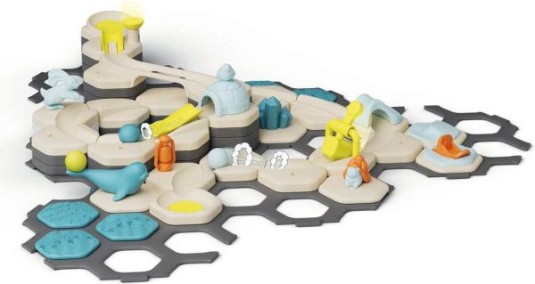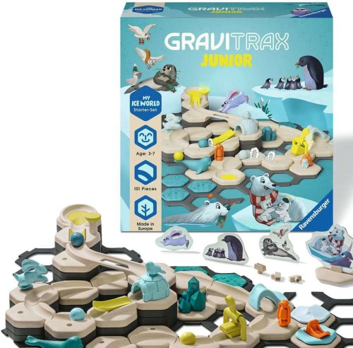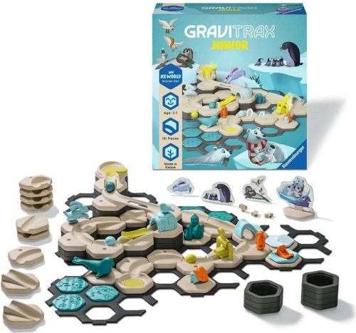 GraviTrax Junior je interaktívny systém guličkovej dráhy pre deti od 3 rokov. Tí najmenší si stavajú svoje vlastné svety z guličkových dráh, ktoré je možné podľa ľubovôle zdobiť a vytvárať tak jednotlivé tematické svety. Deti si tak pri kreatívnom stavaní užijú mnoho zábavy. So štartovnou sadou GraviTrax Junior Ľadový svet sa môžu chlapci a dievčatá vo veku od 3 rokov okamžite ponoriť do dobrodružného sveta plného ľadu. Táto štartovacia sada obsahuje 101 dielikov vrátane akčných doplnkov Hojdačka a Kladivo, aby ste mohli ihneď začať stavať. Vďaka rôznym prvkom a figúrkam zvierat a rastlín z dreveného bioplastu zažijú deti od 3 rokov zblízka ľadový svet, ktorý si môžu pri hre ľubovoľne ozdobiť.