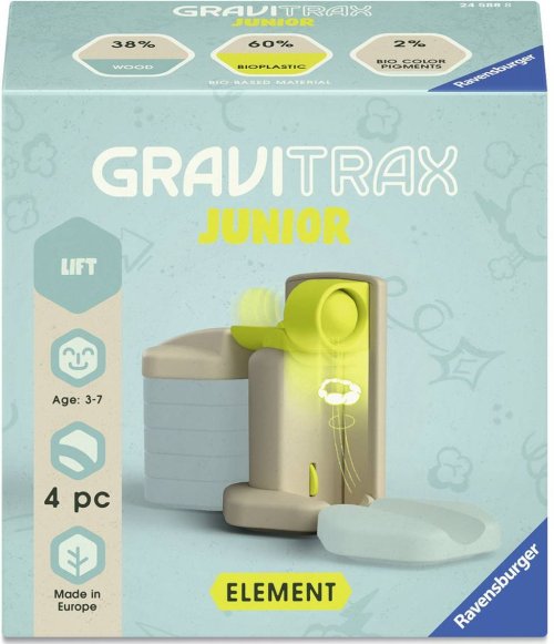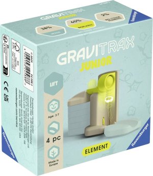GraviTrax Junior je interaktívny systém guličkovej dráhy. Tí najmenší si stavajú svoje vlastné svety z guličkových dráh, ktoré je možné podľa ľubovôle zdobiť a vytvárať tak jednotlivé tematické svety. Rozširujúci prvok Výťah vytvára v dráhe akčný efekt, pretože guľôčku vystrelí do nasledujúceho dielu. Týmto spôsobom môžete postaviť ešte napínavejšie dráhy – pre nikdy nekončiacu zábavu. Rozširujúci prvok GraviTrax Junior Výťah je použiteľný iba so štartovacou sadou GraviTrax Junior!