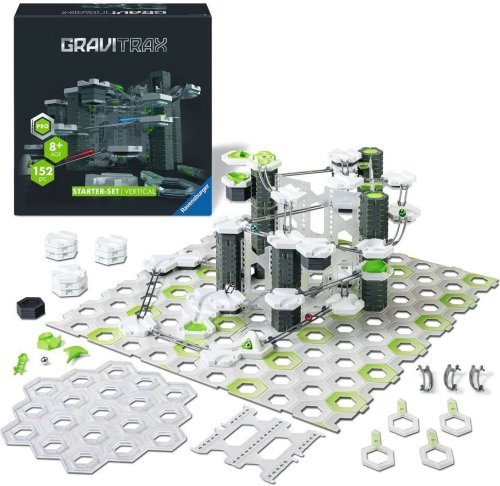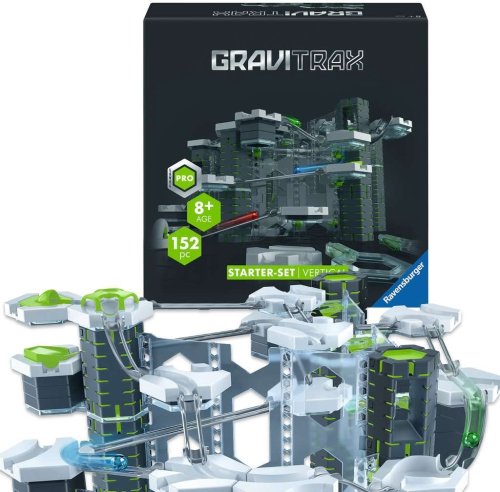 Štartovná sada GraviTrax Pro posunie vašu dráhu o ďalší stupeň vyššie. Táto sada s novými akčnými dielmi umožňuje budovať vašu stavbu do výšky a napínavo tak prekonávať rôzne výškové rozdiely a viesť guličky medzi jednotlivými poschodiami nielen štandardnou cestou. Skúste nechať prejsť guličku cez stenu a uvidíte, čo sa stane. Stavajte nové trate plné jedinečných výziev. Obsahuje: 1x návod, 4x základové dosky, 1x vodováha, 6x guličky, 3x dlhé koľajnice, 6x stredné koľajnice, 9x krátke koľajnice, 1x magnetické delo, 28x zákruty, 4x križovatky, 1x vírivá základňa, 2x Y- základňa 3v1, 4x základne pre vložky, 1x 3cestná štartovacia vložka, 2x vložky do základne pre zachytávač, 2x prepínače, 1x vložka do základne, 1x vložka do základne pre voľný pád, 20x veľké zvislé dlaždice, 9x malé zvislé dlaže 2x dlhé steny, 2x stredné steny, 1x malá stena, 16x balkóny, 4x dvojité balkóny. Stavebnica RAVENSBURGER GraviTrax PRO pre náročnejších staviteľov s novými variabilnými dielikmi posunie vašu dráhu o ďalší stupeň vyššie. Profesionálny systém guličkových dráh s novými akčnými dielmi umožňuje budovať vašu stavbu do výšky. Prekonávajte rôzne výškové rozdiely a veďte guličky medzi jednotlivými poschodiami neobvyklými spôsobmi. Skúste nechať prejsť guľôčku cez stenu a uvidíte, čo sa stane. Guličkodráha RAVENSBURGER GraviTrax PRO je plne kombinovateľná s "bielou" verziou Gravitrax, je možné ju ľubovoľne rozširovať a vytvárať tak nové podoby zložitých a unikátnych cestičiek s vytunenými prekážkami. Stavebnica zaručuje nikdy nekončiacu zábavu okorenenú rozširovaním vedomostí o vlastnostiach gravitácie.