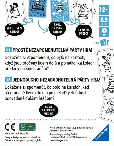 Zahrajte si túto neopakovateľnú hru plnú blufovania so svojou rodinou a priateľmi ešte dnes a užijete si veľa zábavy aj štipku bláznivého chaosu. Jednoduché. Nezabudnuteľné. Zábavné. Úžasné! Princípom hry je, že si navzájom odovzdávate karty a snažíte sa zapamätať, kto má akú kartu práve pred sebou. Pokiaľ presne neviete, ktorá karta je pred vami, musíte presvedčivo blafovať – inak dostanete trestné body. Kto má na konci najmenej trestných bodov, vyhráva! V hre TO (NE)CHCEŠ! Inkognito pri odovzdávaní karty pomenujete kartu tým, že sa predstavíte ako ľubovoľná postava, ktorá vás napadne na základe obrázku na karte. Balenie obsahuje: 110 herných kariet, pravidlá hry