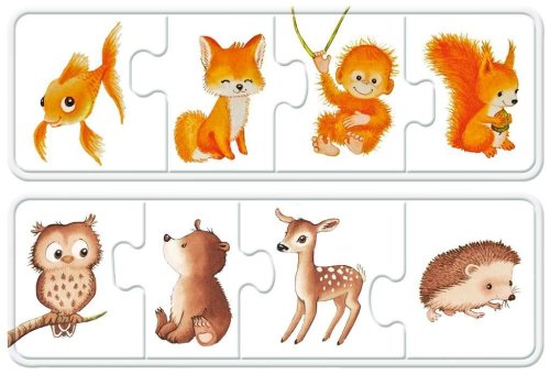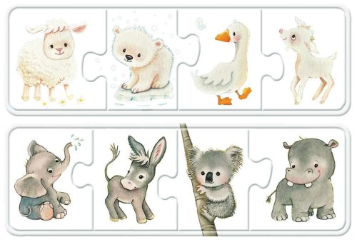 Štvor dielkové puzzle špeciálne vytvorené pre najmenšie deti, ktoré ich zoznamuje s farbami a učí ich pomenovávať zvieratká. Robustné pevné dieliky sú vyrobené z extra silného kartónu a podporujú u detí rozvoj motoriky, sústredenia a fantázie.