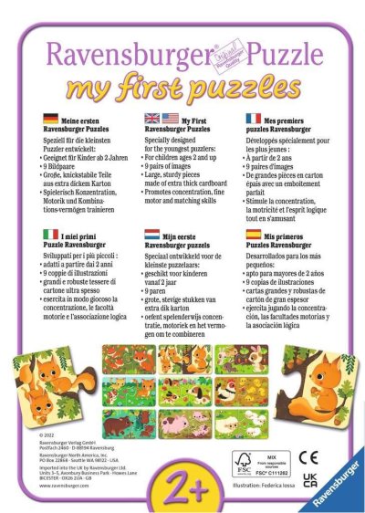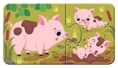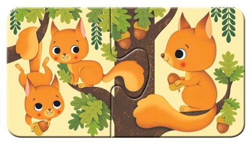 Robustné pevné dieliky sú vyrobené z extra silného kartónu. Skladanie podporuje u detí rozvoj motoriky, sústredenia a fantáziu. Deväť rôznych obrázkov z dvoch dielikov. Učia sa spoznávať zvieratká a ich mláďatká.
