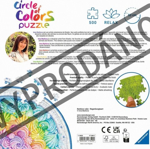 RAVENSBURGER Okrúhle puzzle Kruh farieb: Dúhová torta 500 dielikov