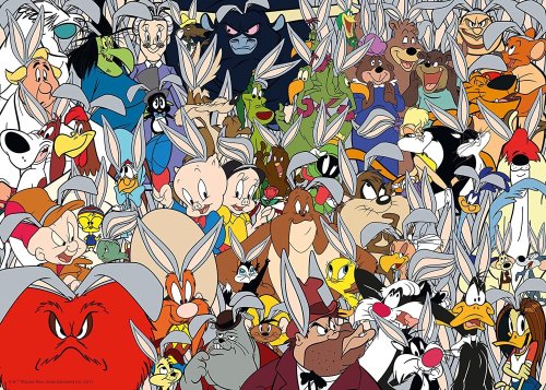 Sú tu Elmer Fudd, Gossamer, Daffy Duck, Porky a Petunia Pig, Sylvester, Tweety a Granny, Foghorn Leghorn, Tasmánsky čert, Lola Bunny, Road Runner a Wile E. Coyote a ďalšie. Bugs sa drží pri zemi; spoznáte ho? Bugs sa prvýkrát objavil vo filme Divoký zajac z roku 1940 a teraz má vlastnú hviezdu na hollywoodskom chodníku slávy! Rozmer zloženého puzzle cca 70 x 50 cm