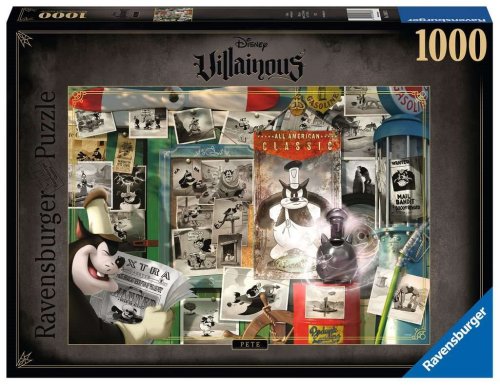 Zoznámte sa s úhlavným nepriateľom Mickey Mouse, neľútostným zločincom Petom! Pete, veľký ako býk a silný ako vôl, svojou herkulovskou silou a hromovým rehotom pripravil Mickeymu, Minnie a ich priateľom mnoho nepríjemných chvíľ. Možno na to nevyzerá, ale Pete je prvý zloduch a najstaršia opakujúca sa Disneyho postava, ktorá debutovala 15. februára 1925, tri roky predtým, než sa diváci stretli s Mickey Mousom vo filme Parník Willie! Je súčasťou nášho radu Disneyho zloduchov! Rozmer zloženého puzzle cca 70 x 50 cm