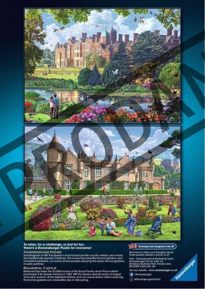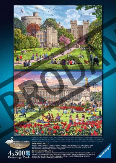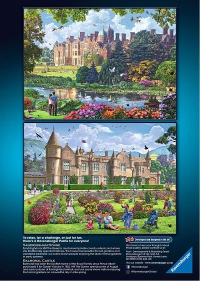 Balenie obsahuje sadu štyroch puzzle s rovnakým počtom dielikov a rovnakým rozmerom. Táto kolekcia je venovaná rezidenciám Jej kráľovskej Výsosti Alžbety II., v ktorých sa zdržiava počas roka: Hrad Windsor, Buckinghamský palác, Zámok Sandringham a Hrad Balmoral. Rozmer zloženého puzzle cca 49 x 36 cm
