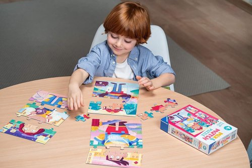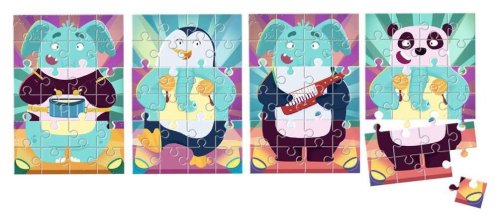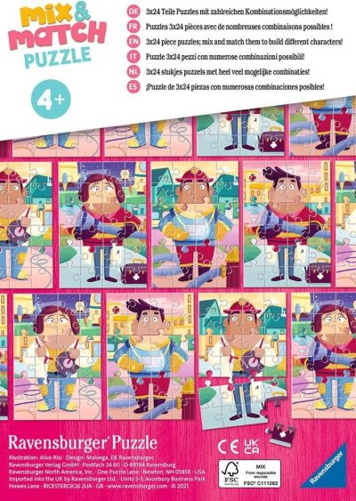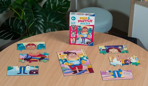 Miešaj a skladaj! Môžeš poskladať motívy podľa obrázkov alebo vzájomne kombinovať a miešať jednotlivé dieliky zo všetkých troch puzzle a vytvárať nové smiešne postavy. To bude zábava! V jednej krabičke nájdete tri puzzle pre deti s 24 dielikmi.