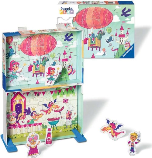 2 puzzle v jednej krabičke spojením oboch častí krabičky zostavíte malé divadielko puzzle sa skladá do krabičky a slúži ako pozadie divadielka súčasťou sady sú postavičky, s ktorými sa deti môžu hrať