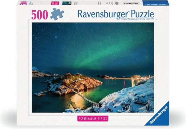 RAVENSBURGER Puzzle Škandinávia: Polárna žiara v Nórsku 500 dielikov