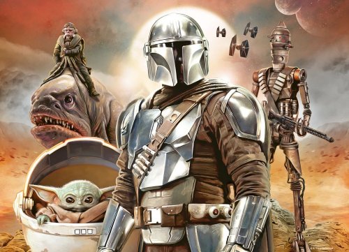 Detské puzzle so štyrmi obrázkami z dobrodružnej série Hviezdnych vojen. Mandalorian a baby Yoda sú hlavnými hrdinami, ktorí v tomto komplete rozhodne nemôžu chýbať. Rozmer zloženého puzzle cca 36 x 26 cm