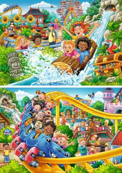 Balenie obsahuje dve puzzle s rovnakým počtom dielikov a rovnakým rozmerom. Rozmer zloženého puzzle cca 26 x 18 cm