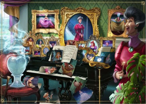 Strašná zloba lady Tremainovej z nej robí zákernú padoušku v Disneyho filme Popoluška z roku 1950! Chladnokrvná a psychicky násilná žena trpko žiarli na svoju krásnu nevlastnú dcéru a robí z nej slúžku. Lady Tremaine nedovolí, aby jej Popoluška stála v ceste, a tak zosnuje plán, ako získať vyššie spoločenské postavenie sobášom jednej zo svojich dcér, Anastázie alebo Drizely, s krásnym princom. Kľúč má. Dokáže udržať dobro pod zámkom? Rozmer zloženého puzzle cca 70 x 50 cm