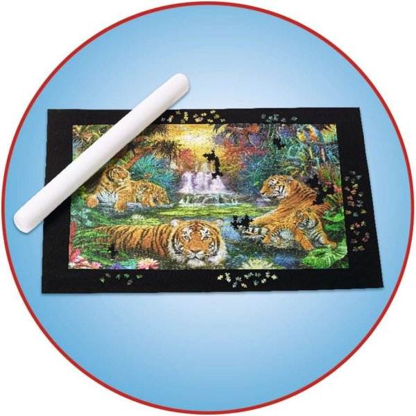 Podložka na puzzle a ich ľahké upratovanie, keď máte rozostavaný obrázok. Podložka je pre puzzle o veľkosti 1000 – 3000 dielikov. Balenie obsahuje nekĺzavú plstenú podložku, nafukovaciu trubičku a 3 gumové pásky.
