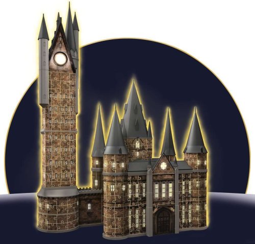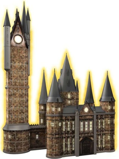 Nočná edícia Rokfortskej školy čiar a kúziel! Stavba z výroby nemeckej spoločnosti RAVENSBURGER sa vďaka LED svetlu v tme farebne rozžiari. Nočný hrad je skvelým darčekom aj nevšedným kúskom v 3D rozmere. Špeciálne ohybné dieliky, ktoré vďaka technológii EASYCLICK presne zapadnú na svoje miesto, umožňujú postaviť fascinujúci model. Dieliky vyrobené z pevného plastu zaručia vynikajúcu stabilitu a celá stavba drží bez nutnosti lepenia. Vďaka originálnym doplnkovým dielikom budú vašu stavbu všetci obdivovať. Balenie obsahuje: plastové puzzle dieliky, príslušenstvo, svetelný modul vr. svetelného pásu LED a návod. Na prevádzku výrobku je potrebné 3 ks 1,5V batérie AAA (nie sú súčasťou výrobku). Obtiažnosť: 3,5 Rozmer zloženého puzzle cca 38,7 x 21,5 x 52,5 cm
