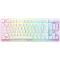 Typ prístroja Herná klávesnica Prevedenie klávesnice Drôtová Formát Bez numeriky (TKL 80%) Rozloženie klávesnice US Snímače klávesov Optické Typ klávesov Nízkoprofilové Pripojenie klávesnice 2,4 GHz + Bluetooth Rozhranie USB A Podsvietenie klávesnice RGB Vhodné pre SMART TV Nie Typ batérií klávesnice Interné batérie