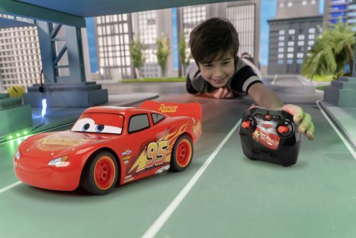 Auto na diaľkové ovládanie Blesk McQueen v licencii Cars 3. 2 kanály (vpred + vzad, vľavo + vpravo), frekvencia 2,4 GHz, funkcia turbo, súčasťou nabíjací kábel USB, v mierke 1: 24. Dĺžka 17 cm.