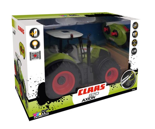 Traktor CLAAS je vernou kópiou skutočného traktora. Má plnú funkciu riadenia a radenia. Funkčné predné, zadné svetlá a otočné kolesá. Traktor je na diaľkové ovládanie s frekvenciou 2,4 GHz. Traktor je na batérie 4xAA, ovládač 2xAAA. Batérie sú súčasťou balenia. Vhodné pre deti od 6 rokov.