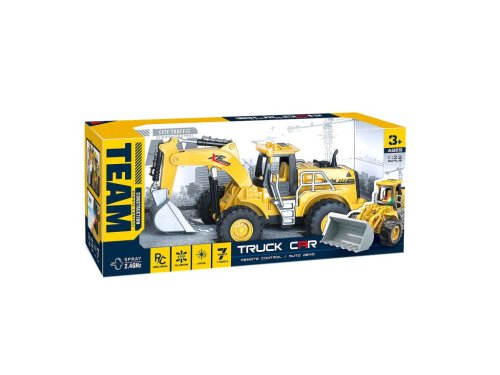 RC vozidlo v mierke 1:22 predstavuje detailne spracovaný model inžinierskeho trucku, ktorý je vyrobený v jasne žltej farbe pripomínajúcej klasické stavebné stroje. Vozidlo je vybavené robustnými terénnymi kolesami s výraznou vzorkou, čo zaisťuje dobrú stabilitu a priľnavosť na rôznych povrchoch. Výrazná lopata na prednej časti je funkčná a pohyblivá, umožňuje zdvíhanie a spúšťanie, čo dodáva modelu realistický charakter. Konštrukcia trucku je doplnená o detaily ako ochranné zábradlie okolo kabíny a anténu, čím je model ešte atraktívnejší a vernejší skutočným strojom.