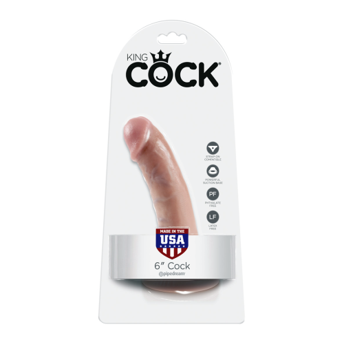Realistické dildo s prísavkou King Cock 6" má skromnejšie rozmery, ktoré uspokoja nielen začiatočníčky a mladé ženy, ale aj najnáročnejšie náruživky.