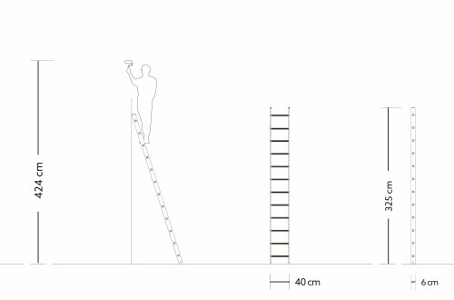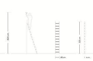 Výška rebríka: 3,25 m Pracovná výška: 4.24 m Šírka: 0,40 m Šírka stabilizátora: 0,825 Max. nosnosť: 150 kg Materiál: hliník/plast Hmotnosť: 5,0 kg Prepravné rozmery: 325x40x6 cm norma: EN