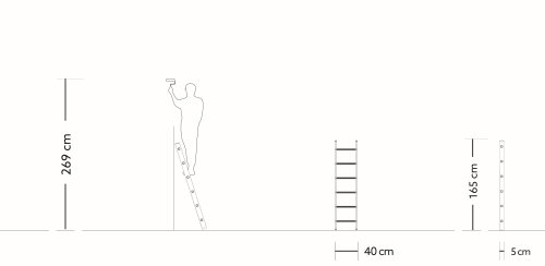 Výška rebríka: 1,65 m Pracovná výška: 2.69 m Šírka: 0,40 m Max. nosnosť: 150 kg Materiál: hliník/plast Hmotnosť: 2,3 kg Prepravné rozmery: 165x40x5 cm norma: EN 131