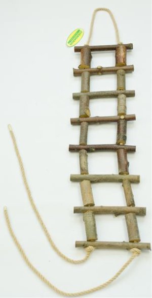 Povrazový rebrík s priečkami z konárov z tvrdšieho dreva. Použitím v ubikácii zaistíte zvieratku aktívny pohyb spojený so zábavou. Vhodný pre myšky, osmáky, potkany a činčily. Dĺžka: 50 cm