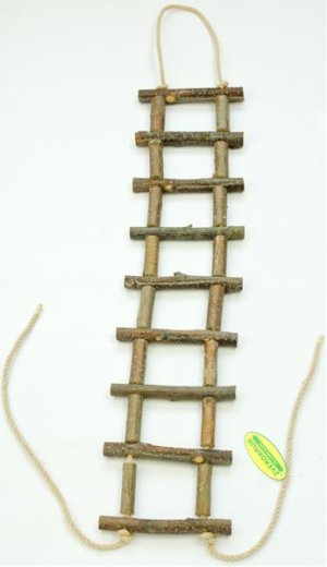 Povrazový rebrík s priečkami z konárov z tvrdšieho dreva. Použitím v ubikácii zaistíte zvieratku aktívny pohyb spojený so zábavou. Vhodný pre myšky, osmáky, potkany a činčily. Dĺžka: 60 cm