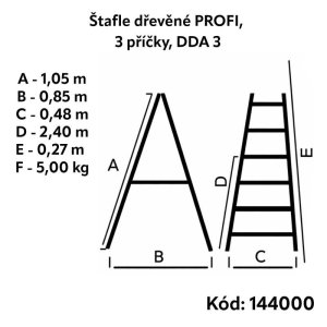 Rebrík drevený PROFI, 3 priečky, D = 105 cm, ENPRO
