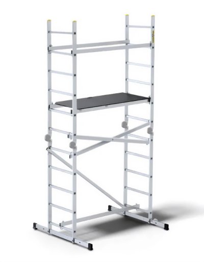 Lešenie - multifunkčné so širokým spektrom použitia. Jednotlivé prvky lešenia je možné využiť ako samostatne stojaci dvojprvkový rebrík, naklápací rebrík a pracovnú plošinu. Skvele poslúži pri každodennej práci profesionálov, ale nájde široké uplatnenie aj pri rôznych domácich prácach.