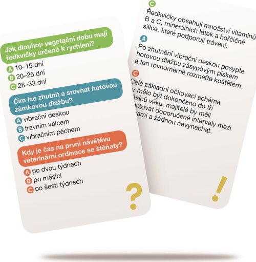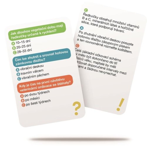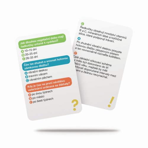 Prečo Vám vlani nevyrástli reďkovky, ako vyzerá tučný pes a čím porovnať zámkovú dlažbu pred domom? Skúste nájsť odpovede v zábavnom kvíze Receptár prima nápadov. Na celkom 60 kartičkách nájdete hneď 180 otázok z 3 odborov, ktorými sú záhrada, dielňa a domácnosť. Pozvite kamarátov a zmerajte svoje sily na poli - avšak tentoraz na poli znalostí. Obľúbený program Receptár prima nápadov oslavuje tento rok 20 rokov od svojho vzniku. A to si zaslúži aj zábavný sprievodný program. Okrem hravého kvízu si môžete zakúpiť ešte aj súbor 20 hier pre celú rodinu. Balenie obsahuje: 60 kartičiek s otázkami a odpoveďami. Hlavné vlastnosti: hra zaručí nielen zábavu, ale aj napínavé zážitky precvičia pamäť, postreh, trpezlivosť aj logické myslenie vyrobené v ČR