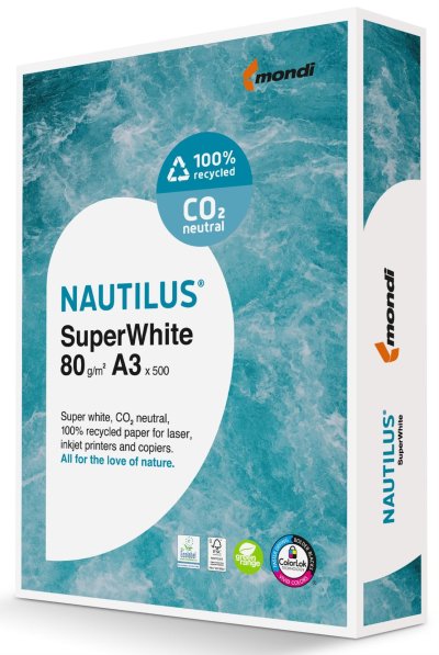 Recykl.papier Nautilus Superwhite, A3, 80 g, 500 l.