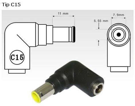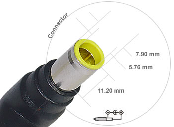 Nabíjací Jack je určený pre notebooky Lenovo C15 (7,9 x 5,76 mm pin) a IBM redukcia pre adaptér s konektorom 5,5 mm x 2,5 mm.