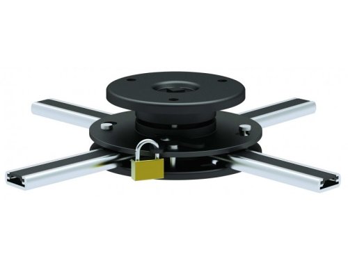 Držiak na strop pre projektory. 360° otočná konštrukcia a funkcia náklonu o ±10° umožňuje maximálnu flexibilitu zobrazenia. Nastaviteľné nosné ramená sa hodia pre väčšinu projektorov so vzdialenosťou otvorov od 160 mm do 330 mm. Maximálne zaťaženie tohto držiaka je 20 kg . Držiak navyše disponuje bezpečnostným otvorom pre umiestnenie visiaceho zámku ( zámok nie je súčasťou balenia ).