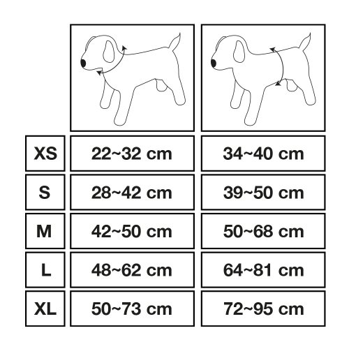 Veľkosť L: určená pre psy s obvodom krku 48-62cm, obvodom tela 64-81cm