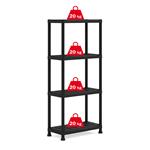 Regál obsahuje celkom 4 police s veľkou nosnosťou , ktoré unesú aj výrazne ťažšie predmety všetkého druhu. Možno ho teda využiť na skladovanie dielenského náradia či záhradníckych potrieb , kedy príde vhod na uloženie náčinia, ktoré by sa inam nezmestilo. Regál tiež môžete primontovať na stenu pre väčšiu stabilitu. Vďaka svojmu prevedeniu v univerzálnej čiernej farbe vhodne doplní každý priestor .