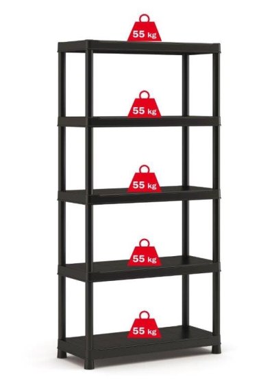 Regál obsahuje celkom 5 políc s extrémnou nosnosťou , ktoré unesú aj výrazne ťažšie predmety všetkého druhu. Možno ho teda využiť na skladovanie dielenského náradia či záhradníckych potrieb , kedy príde vhod na uloženie náčinia, ktoré by sa inam nezmestilo. Regál tiež môžete primontovať na stenu pre väčšiu stabilitu. Vďaka svojmu prevedeniu v univerzálnej čiernej farbe vhodne doplní každý priestor .