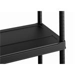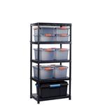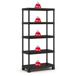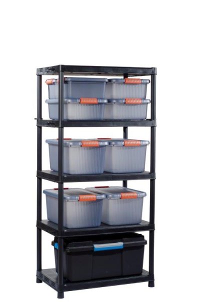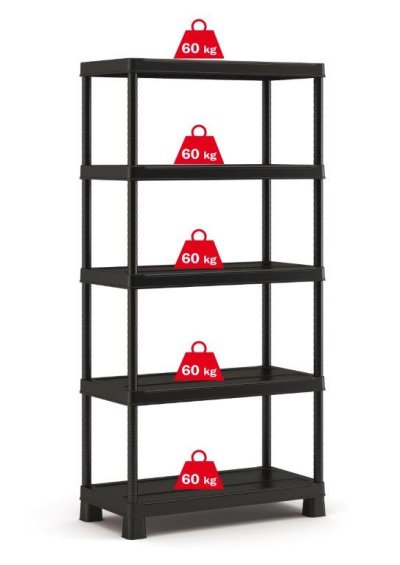 Skriňa obsahuje celkom 5 políc s extrémnou nosnosťou , ktoré unesú výrazne ťažšie predmety všetkého druhu. Možno ju teda využiť na skladovanie dielenského náradia či záhradníckych potrieb , kedy príde vhod na uloženie náčinia, ktoré by sa inam nezmestilo. Regál tiež môžete primontovať na stenu pre väčšiu stabilitu. Pre viac úložného miesta je regál vybavený pojazdmi pre boxy typu Tribac (Scuba) , do ktorých môžete uschovať najrôznejšie náradie. Vďaka svojmu prevedeniu v univerzálnej čiernej farbe vhodne doplní každý priestor.