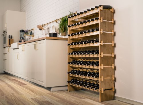 Zaobstarajte si dizajnovo čistý a zároveň praktický stojan na 72 fliaš vína . Precízne spracované bambusové drevo mu dáva príjemný prírodný vzhľad, takže štýlovo doplní každý interiér. Hlavné ale je, že sú v ňom fľaše bezpečne a správne uložené, nedochádza k vysychaniu korku a ľahko sa v nich orientujete.